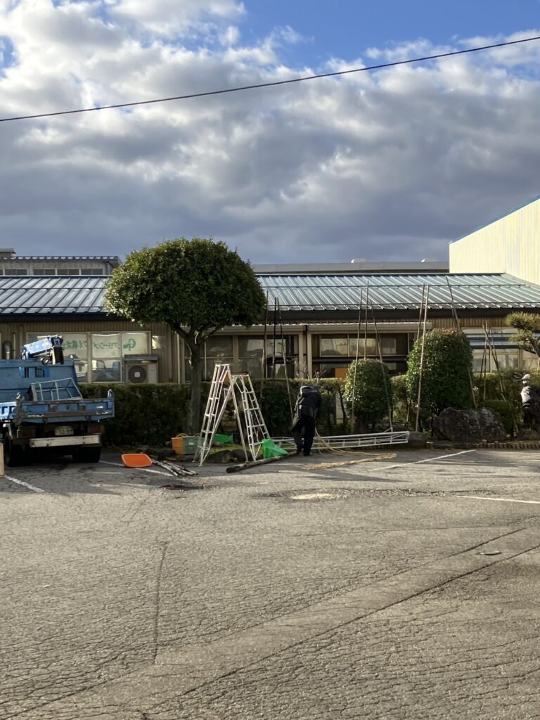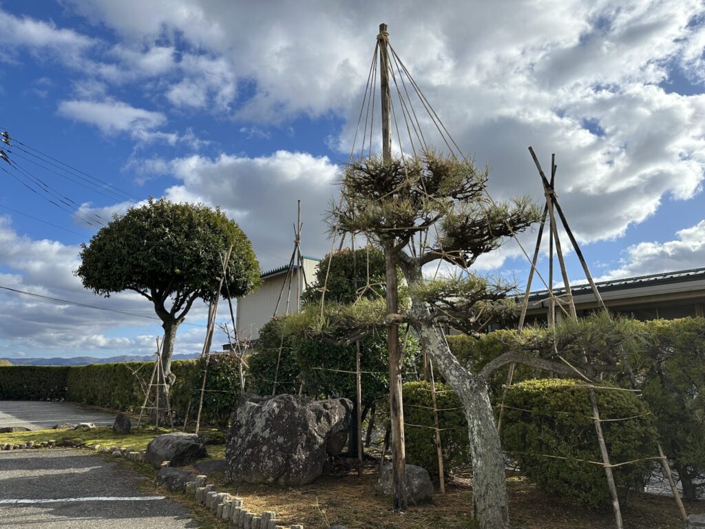 敷地内の植木もきれいに雪囲いが施され、冬支度が整いました。