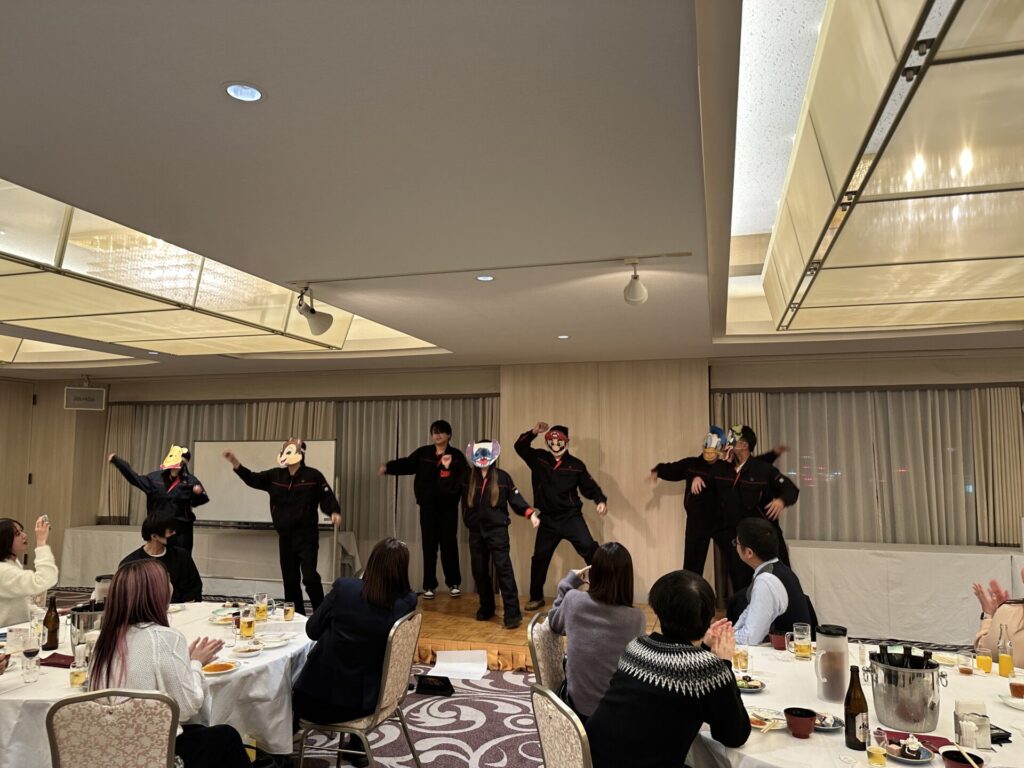 今年入社した社員によるダンスの余興では、会場が大いに盛り上がり、ちょっとした質問コーナーもありました。