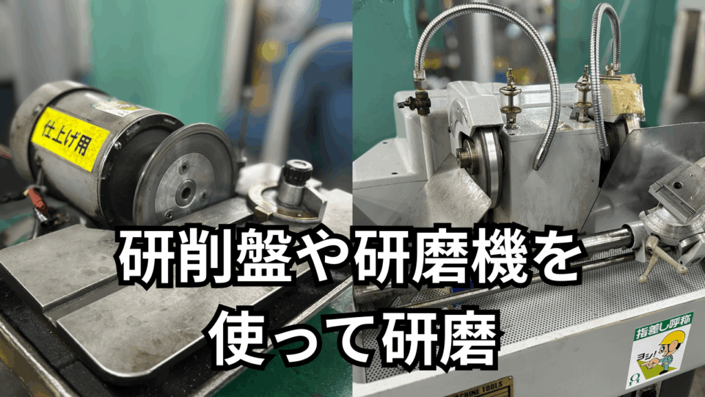 研磨には研削盤(グラインダーとも呼ばれます)や研磨機などを使います。