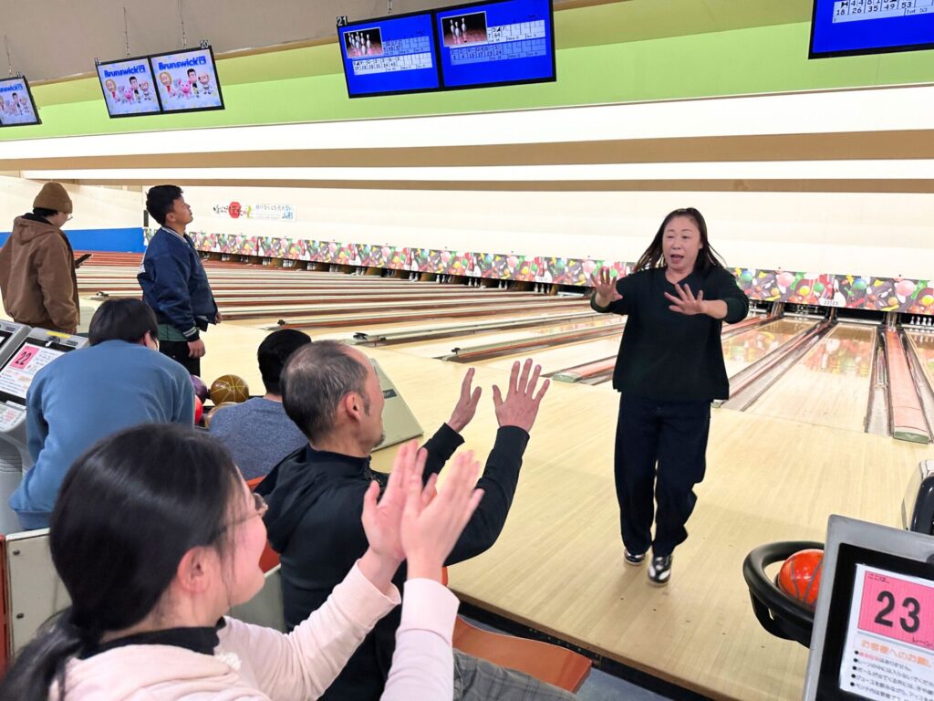 まずは「鶴岡ヤマテボウル」さんを会場に行われたボウリング大会。部署や年代の垣根を越えて大いに盛り上がり、あちこちで歓声が上がる白熱した戦いが繰り広げられました!ストライクやスペアのたびにハイタッチが交わされ、みんなの最高の笑顔を見ることができました。