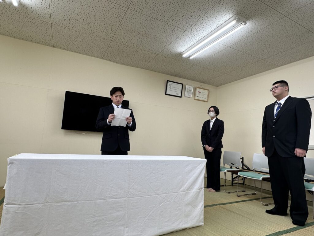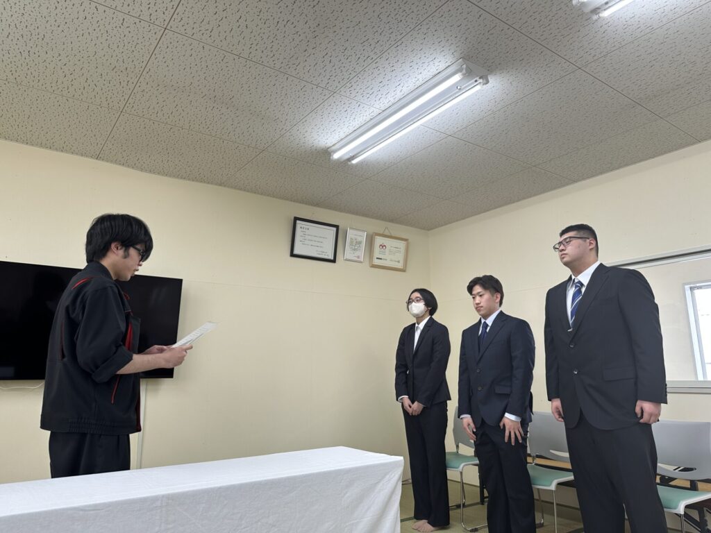 入社式では少し緊張した様子も見られましたが、新しいスタートへの前向きな気持ちが伝わってきました。