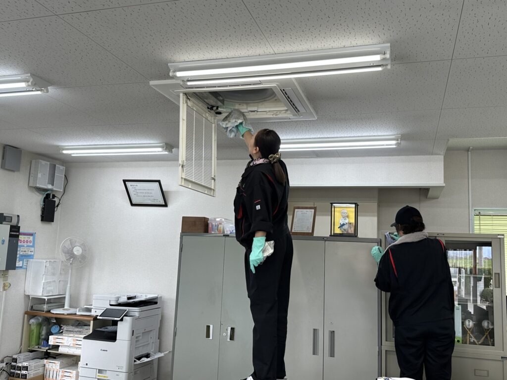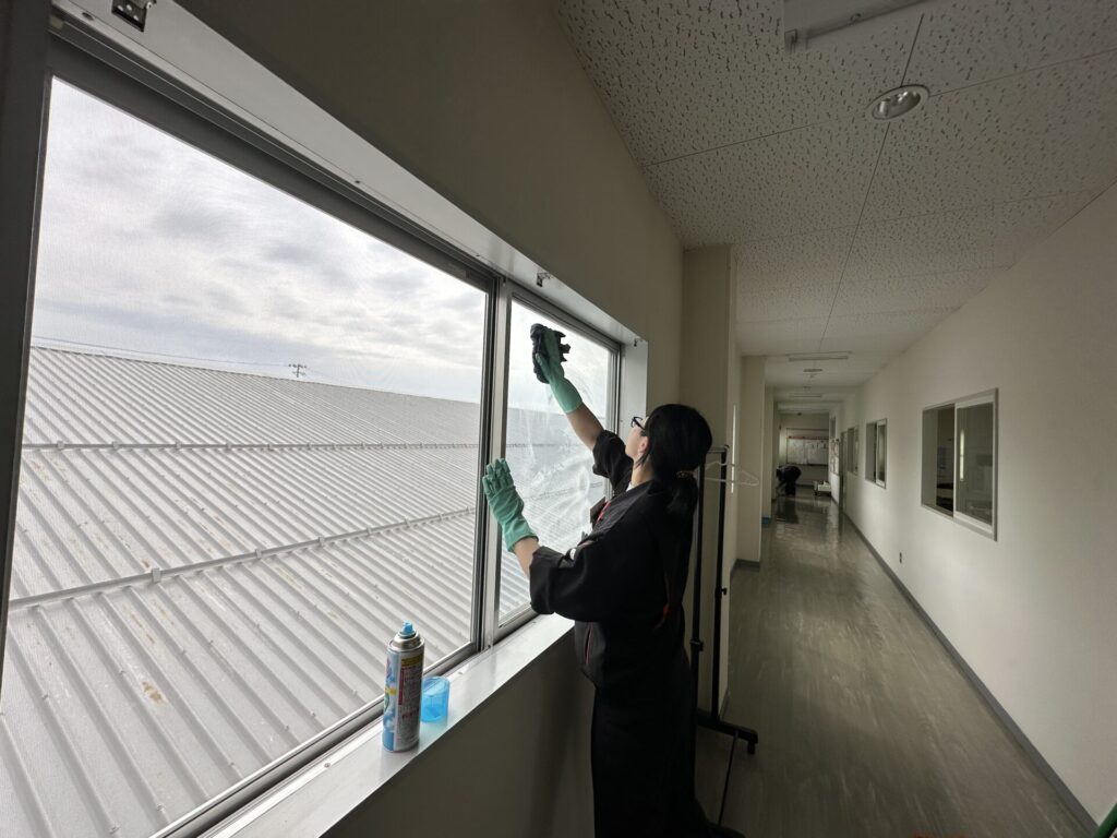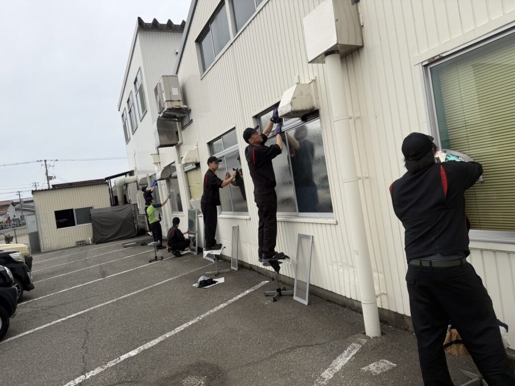 先日、社員総出で「春の大掃除」を実施しました! 春の大掃除は「外回り」や「窓」を中心とした清掃です。みんなで分担し、一生懸命に汚れを落としていきました。